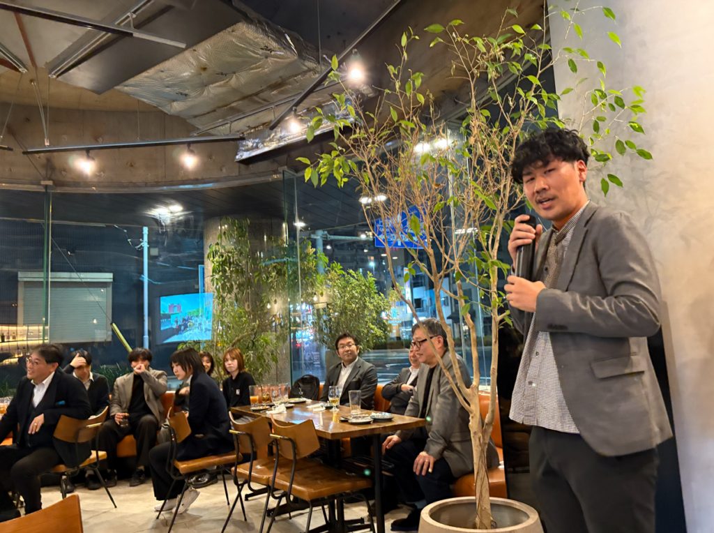 忘年会の会場をお借りして、2026年竣工予定の藤田建装様の新社屋プロジェクトについて発表させていただきました!(写真:松久保)