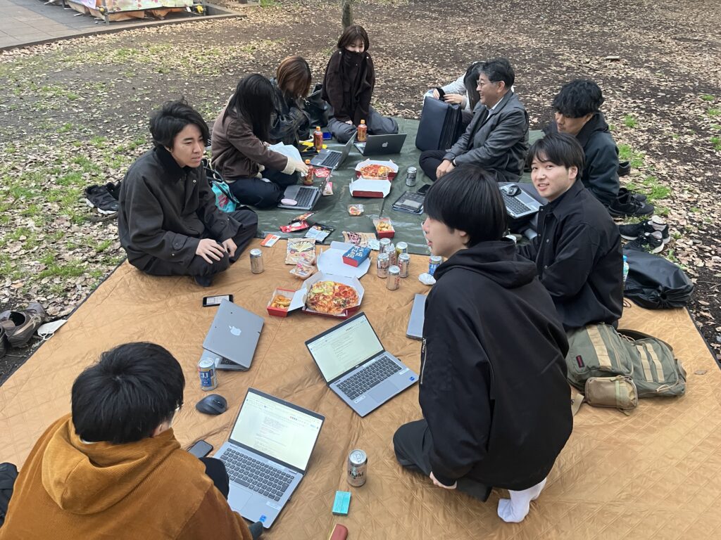 会議を終えたあとは、そのままお花見タイムへ。桜を眺めながら、お酒を楽しむ人、ゆっくり語らう人、さらには走りに行く人まで…それぞれが思い思いの過ごし方で、春のひとときを満喫しました。